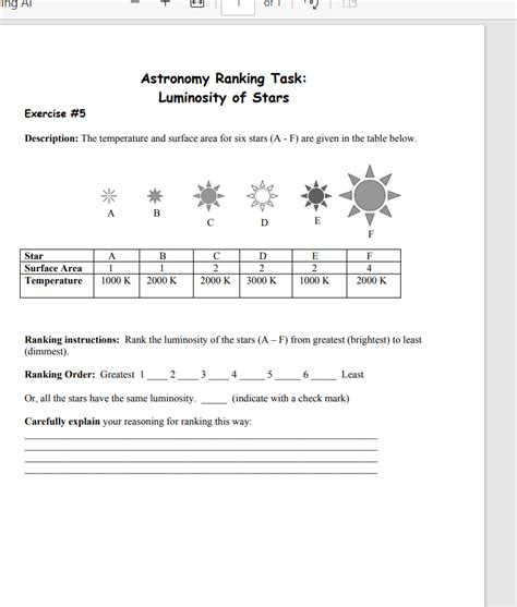 Read Online Astronomy Ranking Task: Luminosity Of Stars rtf